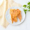 2~3ミリの薄さで、パピーちゃんからシニアの子まで食べやすくなっております。 手でも簡単にちぎれるので愛犬の食べやすいサイズに調節もしやすいです◎ 保存料等の添加物は一切使用しておりません。 特殊な製法で仕上げることで、香りがとてもよく、 他のジャーキーが苦手なワンちゃんでも食いつき抜群です。 調理時、梱包時に二度の検品作業を行っております。