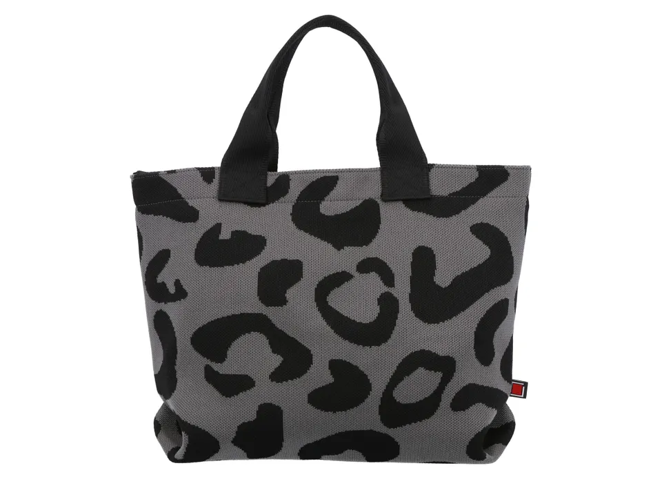 大きなヒョウ柄で、シンプルな装いにアクセントを添えてくれるニットトート。ブラック/ベージュ、ブラック/グレーの配色を、表と裏で反転させているのがポイントです。 洗濯機で丸洗い可能(※乾燥機は不可)なお手入れしやすいのが特徴。折り畳んで持ち運べるほか、シワになりにくいのも魅力です。 このバッグに使用しているソフトで肌触りの良い上質のニット糸は、ソファなどにも使用されている耐久性に優れた素材です。また、柔らかさが魅力のニットですが、インナーが総裏地仕様なので、荷物を入れても型崩れしにくい構造になっています。 タブレットやB5ノート、500mlペットボトル、折り畳み傘などの必需品をスマートに持ち運べるサイズ感です。