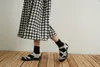 KNNO310ドロストチェック裾しぼりバルーンワンピース BLACK/S