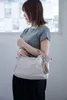 デイリーユースにちょうどよい、シンプルなバッグ&ポーチ。 大人が毎日持ちたくなる品の良さを目指しました。 無駄のないデザインで、すっきり収納できるトートバッグ。 光沢と厚みのあるポリエステル生地に、しっとり質感の合皮ハンドルを合わせました。 持ち上げるとくったりたゆむフォルムがポイントです。 3部屋構造で収納力抜群!仕切りになっているファスナーポケットは内側がシルバーコーティングされていますので、保冷剤や冷えた飲み物などを入れて持ち歩く際に重宝します。 またマチがある程度広がりますので、コンパクトなランチBOXやおにぎりなどを入れてもよさそうです。 他に内・外ポケットが計3つ、明るめの裏地カラーも相まってバッグ内の迷子問題の手助けになります。 付属のアクセントチャームは、アームカバーやストールのホルダーとして使えます。 バッグの両端に付いているDカンには、お手持ちのバッグチャームやショルダー紐を取り付けることができます。 本体表地は撥水加工済です。 ※撥水加工は永久的なものではありません。また、完全に水を防ぐものではありません。