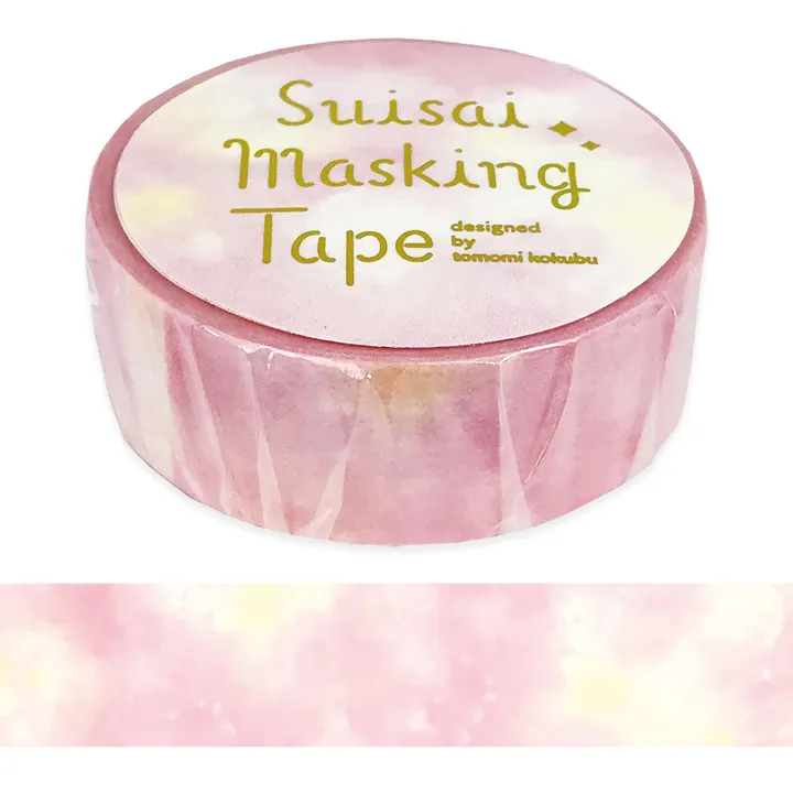 【水彩柄マスキングテープ15mm よろこび】 ◎『水彩柄アーティスト こくぶともみさん』とのコラボ・マスキングテープ。  優しい色遣いと淡い絵柄が魅力的です。 ◎ふんわりとした水彩柄にが幅広い年齢層の女性に愛されるような色合いです。 ◎色は全部で6種類の展開。ついつい全部集めてしまいたくなる美しさです♪
