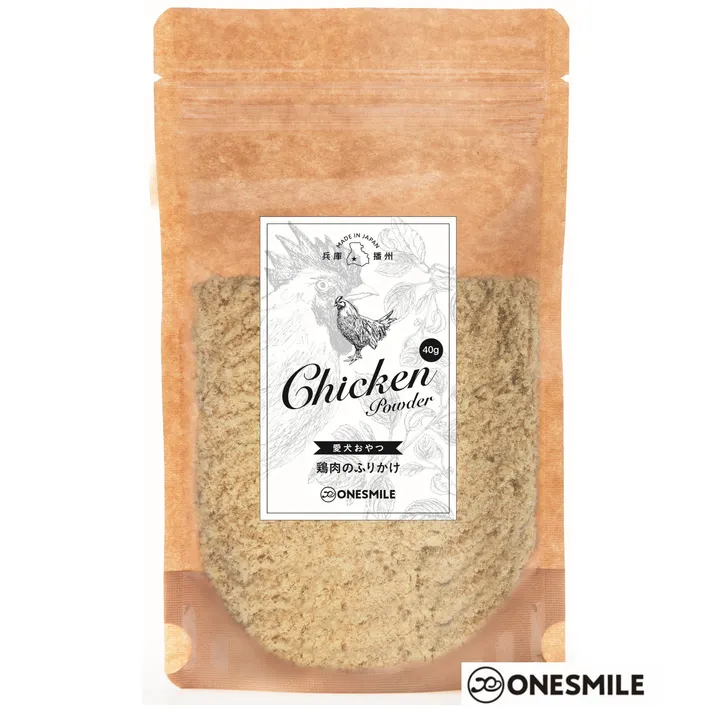“いつものごはんが変わる 兵庫県産・平飼い赤鶏の身のみを使用し、 熟練の職人がスジや脂身を一つひとつ丁寧に取り除いた、 素材品質にこだわった無添加ふりかけ。パウダー状で簡単にドライフードにからみやすい。 低温でじっくり乾燥させるエアドライ製法により、 赤鶏ならではの豊かな香りと旨みを凝縮。 袋を開けた瞬間の香り立ちが違い、 いつものフードにふりかけるだけで食いつきの変化を実感しやすい設計です。 高たんぱく・脂質を抑えた仕上がりで、 小型犬やシニア犬にも提案しやすく、 食事に悩みを抱えるユーザーへの“解決型アイテム”として展開可能。 さらに、好き嫌いのあるわんちゃんにも使いやすく、 トッピング需要をしっかり取り込めるため、 既存フードとの併売・客単価アップ・リピート導線づくりにも最適です。 添加物は一切使用せず、 素材本来の香りと味わいだけで勝負できる、 ナチュラル志向市場にフィットした一品。 「かけるだけ」で価値が伝わる=説明コストが低い 食いつき訴求で“即売れ”につながりやすい フード売り場とのクロス提案で売場展開しやすい 小型犬・シニア・偏食対策まで幅広くカバー 無添加カテゴリーで差別化しやすい いつものごはんに、“食いつき”という付加価値を。