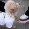 手編みで丁寧に制作された高品質な首輪です。 調整可能なデザインで、わんちゃんの首に優しくフィットし、長時間着用しても快適です。 スタイリッシュなデザインと快適さを兼ね備えており、散歩やアクセサリーにも最適です。 愛情を込めて手作りされた首輪で、愛犬との特別な絆を深めませんか? ▼お手入れ方法 基本的には中性洗剤とぬるま湯を染みこませたタオルでたたくように汚れを拭き取ります。 仕上げにぬるま湯ですすぎます。 すすいだ後は、全体をタオルなどでくるんでぽんぽんとたたき、金具部分の水分は念入りに拭き取って下さい。 ※大切な愛犬の安全を守るために、リードや首輪の定期点検をお願いいたします。 犬具は消耗品であります。ご使用前に、リードや首輪の結び目、バックル、ナスカン、および素材の状態を注意深く確認してください。 摩耗や亀裂、異常なくぼみがないかをチェックすることもお忘れなくお願いいたします。 リードや首輪に異常な箇所がみられる場合は、使用を止め、速やかに交換してください。