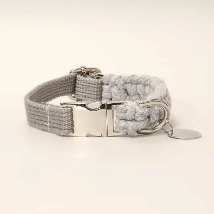 手編みで丁寧に制作された高品質な首輪です。 調整可能なデザインで、わんちゃんの首に優しくフィットし、長時間着用しても快適です。 スタイリッシュなデザインと快適さを兼ね備えており、散歩やアクセサリーにも最適です。 愛情を込めて手作りされた首輪で、愛犬との特別な絆を深めませんか? ▼お手入れ方法 基本的には中性洗剤とぬるま湯を染みこませたタオルでたたくように汚れを拭き取ります。 仕上げにぬるま湯ですすぎます。 すすいだ後は、全体をタオルなどでくるんでぽんぽんとたたき、金具部分の水分は念入りに拭き取って下さい。 ※大切な愛犬の安全を守るために、リードや首輪の定期点検をお願いいたします。 犬具は消耗品であります。ご使用前に、リードや首輪の結び目、バックル、ナスカン、および素材の状態を注意深く確認してください。 摩耗や亀裂、異常なくぼみがないかをチェックすることもお忘れなくお願いいたします。 リードや首輪に異常な箇所がみられる場合は、使用を止め、速やかに交換してください。