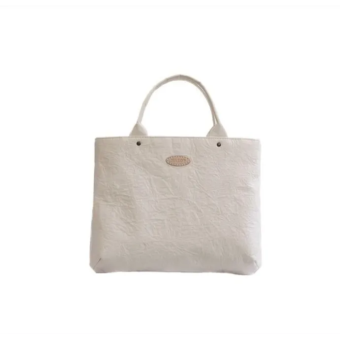 【和紙雑貨】ハンドバッグS バッグ 鞄 兵庫県多可町の特産品である杉原紙と播州織を使用。 ロゴネームやハンドル部分などで使用している革も多可町で穫れた鹿の革を使用しています。 生産、素材ともに【made in japan】でものづくりを行っております。 杉原紙は100%自然由来の原料で出来ており、鹿革も獣害駆除で穫れた鹿の革のみを使用しています。 ある程度の重さに耐えられるような芯材選びや縫い方はこだわっています。 マチはありませんがダーツを底付近に4カ所(表と裏)取り入れてるため底に膨らみがあり、 フラットな鞄より収納ができます。内装にはポケットがついているため便利!