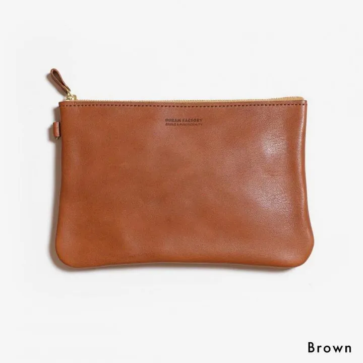 ◉バッグインバッグにちょうど良いシンプルなポーチ◉ - 手帳や小物の収納に便利なファスナーポーチ。化粧品や筆記具、充電器やUSBケーブルなど、カバンの中で散らばりがちな小物を整理するのに便利です。 また、文庫本などの小さめの書籍や、Kindle Whitepaperなど小型のタブレットの持ち歩きにもおすすめです。 (iPad miniは入りません。Lサイズがおすすめです。) シボと呼ばれる小さなシワが現れる柔らかい手触りの革で製作しています。味わい深く表情が変わるのを楽しめる素材です。 A6サイズを収納しても余裕がある大きさなので、お薬手帳や診察券・保険証などをまとめるのにもおすすめです。 12×17 cmくらいの薄い冊子(厚さ1cm以内)であれば簡単に出し入れできます。自治体によりますが、母子手帳も収納可能です。 Dカンにはストラップ等が取り付け可能です。ストラップを取り付ければ、そのまま持ち歩いても安心です。 - ■サイズ H14×W20×D1.2cm ■素材 牛革(ヴォーノ)・真鍮・ファスナー ■原産国 日本 - ご注意 ※使用する部位によりシボの入り方が異なります。また、植物性タンニン鞣しの革を使用しているため、色むら、シワ等がある場合がございます。 ※撮影の状況、閲覧する環境によって⾊などが変わって⾒える場合があります。