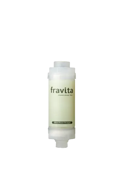 毎日シャワーで使っている水は除菌された水道水です。 シャワーを浴びる間に水道水の消毒に使われた残留塩素や劣化した配管にできた錆や不純物が、水と共に肌から身体内に吸収されます。 fravitaはfragrance+vitaminを組み合わせた意味のブランド名であり身体を洗い流すシャワーの役割を超え、身体の美容や健康のために開発してきたアロマの香りのビタミンシャワーフィルターです。 すべての人の一般的なシャワーを、美しくて健康的なスパとして楽しめるようにすることを目標としています。 肌の美しさと体の健康のために。韓国発祥の新しいバスグッズ。 これまでシャワーヘッドなどがありましたがビタミンシャワーフィルターfravitaは日本に無かった新しいアイテムです。