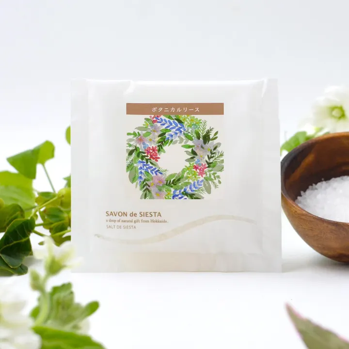 ●心を肌を癒すバスタイムに ミネラルを豊富に含む「死海の塩」をはじめ、天然塩とエッセンシャルオイルで作った贅沢なバスソルトに、お肌の調子を整えるラズベリーエキスもプラスしました。やわらかい湯あたりとともに、穏やかで甘いリンデン(菩提樹)と爽やかなシトラスの香りが心地よく漂います。 ●「死海の塩」配合!湯上りのお肌はしっとり。 イスラエル・ヨルダンにまたがる塩湖「死海」の水から作られる塩と海塩をブレンドしてお作りしています。 バスソルトに含まれる塩分は、肌表面のタンパク質と結びつきコーティングしてくれます。その作用により、湯冷めしにくく、お風呂上がりもぽかぽか。そしてお肌を乾燥から守り、すべすべに保ってくれます。 「バスソルトの王様」とも呼ばれる「死海の塩」は、マグネシウム、カルシウム、ナトリウムといった天然ミネラルが豊富で、湯あたりも柔らかくしてくれるので、気持ち良く入浴することができます。 ●7つの植物が織りなすリースをイメージした香り ボタニカルリースシリーズは、ハーブや花、木々の枝葉を丸くリースに するようなイメージで7種類の精油でブレンドしました。 ~香りのテーマは、気持ちを整え、軽やかに前へ~ オレンジスイートとグレープフルーツの明るくみずみずしい香りが気持ちを軽やかにし、 ラベンダーとマジョラムが緊張をほどいて穏やかさをもたらします。 そこに、シダーウッドやフランキンセンス、サンダルウッドの深みある木のぬくもりが重なり、 自然の中で深呼吸するような落ち着きを感じさせてくれます。 一日の終わりに自分をやさしく包み込むバスタイムをお届けします。