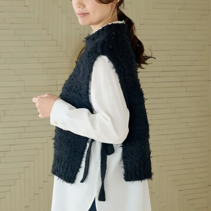 ツイード調に仕上げたリボンヤーンのニットベスト BK