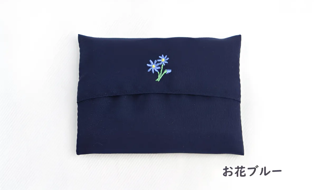 刺繍入りミニティッシュケース 同デザイン5個セット お花ブルー 紺地