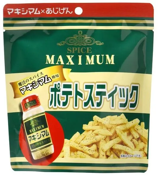 宮﨑生まれの魔法のスパイス「マキシマム」を使い、ザクザク食感のポテトスティックを味付しました。 じゃがいもの噛みごたえある食感と、マキシマムのパンチの効いた風味と旨味が絶妙にマッチします。