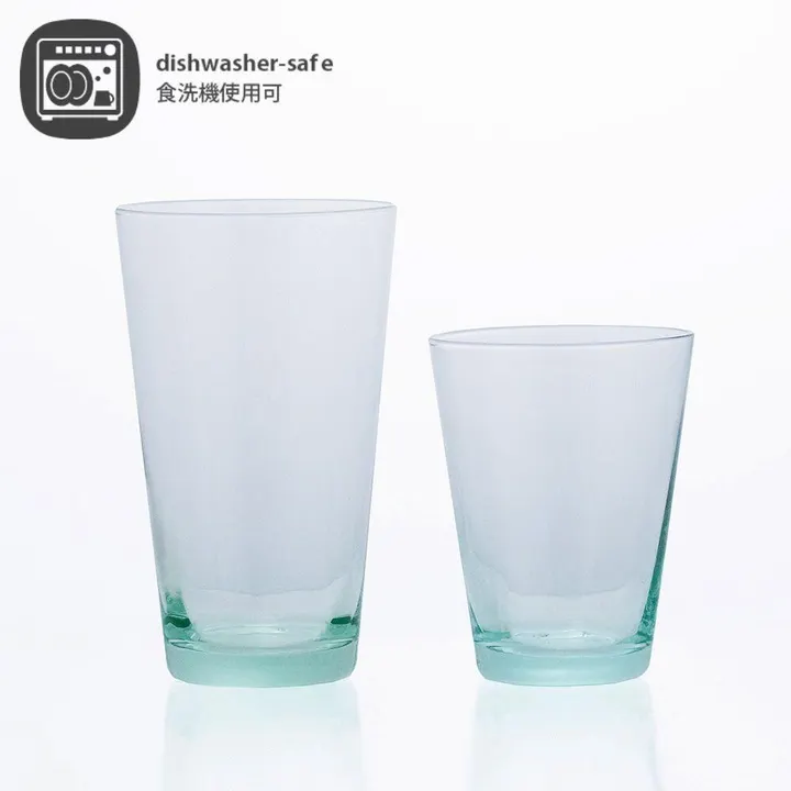 シンプルなフォルムで、どんなインテリアにも馴染むすっきりとした定番グラス。 こちらの WATER シリーズは、日常的に水を飲むシーンをイメージして持ちやすいデザインにしています。 L サイズはストローが挿しやすく、水以外にもさまざまな飲み物にお使いいただけます。 【リューズガラスについて】 リューズガラスとは再利用されたガラスのことで、一般的には「リサイクルガラス」や「再生ガラス」とも呼ばれています。 一度は捨てられたり不要になったガラスをリサイクルして使っているため、環境にやさしいサスティナブル( Sustainable =持続可能)な社会への取り組みとしても注目されています。 リューズガラス製品は一つひとつが職人たちの手によるハンドメイド。 炉(ろ)で溶かしたガラスを竿(さお)ですくい取り、型の中で息を吹き込みながら作る「型吹き成形」という技法で、たとえ同じ型のシリーズであっても、全く同じ仕上がりになるということはありません。 ガラスの流れや小さな気泡、口の部分に盛り上がった箇所などがあったりしますが、これは吹き竿からガラスをカットした後、熱処理した時にガラスが流れてできるもので、これもまた吹きガラスの特徴です。 ハンドメイドならではの、ガラス表面に生まれるわずかな“しわ”や小さな気泡、繊細な表情の違いなどをお楽しみください。 ※リューズガラスは再生ガラスを使用した当社商標登録商品です。
