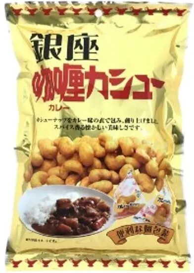 カシューナッツをカレー味の衣で包み、煎り上げました。 スパイス香る懐かしい美味しさです。 お酒のおつまみ・お子様のおやつにも最適な商品です。 手の汚れない個包装タイプなのも嬉しいポイントです!!