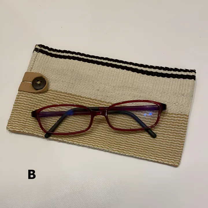 インド、フェアトレードNPO”MESH”生産者グループの1つ、ハンセン病の療養施設(現地ではコロニーと呼んでいます)で手織りしている細長い織物”べサニーテープ”を使用して、Teebomではオリジナル商品を作っています。 べサニーテープは、太番手の綿糸を使った最大の幅が11センチと言う細長い、カラフルでちょっと厚手の手織物です。生成りの糸を染めるところから生産者自ら行っています。幅が11センチまでと言う制限がある中で、どんな商品が作れるか、生産者の皆さんと試行錯誤がとても楽しいです。 また、ハンセン病により、様々な障がいを持つ人たちが、織物・染め物・縫製などの職業技術支援を受けて、物作りをしています。経済的に自立できることが社会的な自立にもつながることができる、支援を受けている私が、物作りを通じて、誰かのためになることも実感できるフェアトレードは、生産者・消費者がみなHappyになれる仕組みです。 今回作ったのは、「メガネケース」です。べサニーテープがちょっと厚手でざらっとしているので、コットン生地の裏地を付けてもらいました。スムースに出し入れしていただけます。 大きさは高さ18センチ、幅10センチです。メガネ以外にペンケースにしたり、スマホ入れにすることが可能です。 *ただし、すべてのスマートフォンが入る訳でありません。