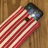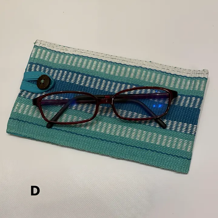 インド、フェアトレードNPO”MESH”生産者グループの1つ、ハンセン病の療養施設(現地ではコロニーと呼んでいます)で手織りしている細長い織物”べサニーテープ”を使用して、Teebomではオリジナル商品を作っています。 べサニーテープは、太番手の綿糸を使った最大の幅が11センチと言う細長い、カラフルでちょっと厚手の手織物です。生成りの糸を染めるところから生産者自ら行っています。幅が11センチまでと言う制限がある中で、どんな商品が作れるか、生産者の皆さんと試行錯誤がとても楽しいです。 また、ハンセン病により、様々な障がいを持つ人たちが、織物・染め物・縫製などの職業技術支援を受けて、物作りをしています。経済的に自立できることが社会的な自立にもつながることができる、支援を受けている私が、物作りを通じて、誰かのためになることも実感できるフェアトレードは、生産者・消費者がみなHappyになれる仕組みです。 今回作ったのは、「メガネケース」です。べサニーテープがちょっと厚手でざらっとしているので、コットン生地の裏地を付けてもらいました。スムースに出し入れしていただけます。 大きさは高さ18センチ、幅10センチです。メガネ以外にペンケースにしたり、スマホ入れにすることが可能です。 *ただし、すべてのスマートフォンが入る訳でありません。