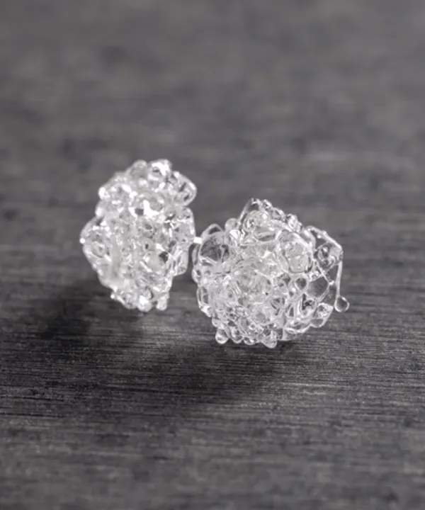 電子部品用光学ガラスの端材をアップサイクルしたガラスアクセサリーで透明感と輝きが特徴です。