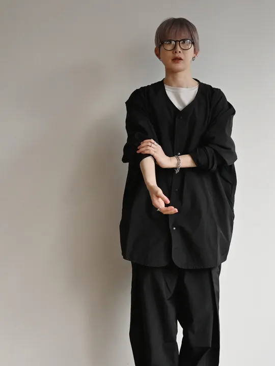 【新商品】 カーディガン シャツ SIZE:M/L | pocketable cardigan (NW26003) 15-BLACK SIZE:M
