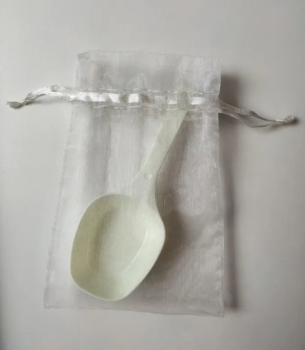 源気商会のバスソルト約90g(スプーン3杯分)をオーガンジー袋に入れてください。 浴槽(約200L)に袋に入れたバスソルト(約90g)を溶かして入浴してください。 形状・外観: プラスチック製スプーン(30cc) 色:白      オーガンジー巾着袋:透明・白