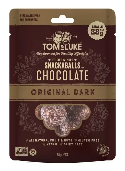 「FOODEX美食女子」美食Award2019スイーツ部門で金賞を受賞商品! 【溶けない!常温流通可能】定番の一番人気<オリジナルダーク>。 🔳<ヴィーガン対応>罪悪感にサヨウナラ!新感覚のギルトフリーチョコレート。 🔳デーツとナッツから作られたチョコレートボール。 🔳グルテンフリー、精製砂糖不使用、乳製品不使用、卵不使用、ヴィーガンでヘルシーなおやつとしてお召し上がりいただけます。 🔳精製砂糖不使用でドライフルーツのデーツ本来の甘さをいかし、食べ応え抜群です。 【トム&ルークとは?】 ニュージーランドで大人気のパーソナルトレーナー「トム」と、客足の絶えないレストランのシェフ「ルーク」が健康と美味しさを形に変えた実力派スイーツです。 【健康と美味しさをカタチに】 甘いものは食べたいけど、砂糖はできれば摂りたくない!そんな願いをドライデーツの甘さを最大限に生かして実現しました。 【まるで本物のチョコレート?!】 カカオも使用しているためチョコレートのような感覚で召し上がれます。 【健康に欠かせないアーモンド】 ビタミンE、食物繊維、ミネラルが豊富に含まれるアーモンドを、ドライデーツと一緒に混ぜて食べやすくしました。 【こんな時にオススメ】 🔳ダイエット中で、砂糖を使ったスイーツを控えている時 🔳トレーニングの栄養補給 🔳小腹が空いた時 🔳朝ごはんに十分な時間が取れない時 🔳コーヒータイムに 🔳ワインのお供に 🔳ハイキングなどお出かけ時に 🔳忙しい時 🔳食べているときに音が気にならないので、オフィスで仕事中にもサクッと食べられる <ジップ付の袋なので、ちょっとずつ食べて保存も出来る!>