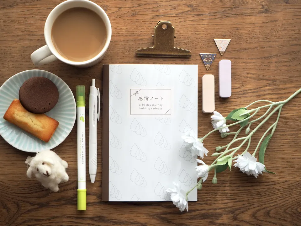 * コンセプト * 感情を紐とき 価値観を深めて 心地よく生きていく 心理学的アプローチを交えながら 10日間にわたって「悲しみ」の感情を 受け止め、大切なものに気づき、 心を癒していくノートです。 * こんな方におすすめ * ・「悲しみ」の感情を抑えがち ・「悲しみ」とどう付き合っていくべきかわからない ・自分の感情、心の動きを言語化したい ・ライフログやジャーナリングに興味がある * 内容 * ・10日間分の「悲しみ」を  受容しながら回復に向かうワーク ・「悲しみ」の奥に隠れていた大切なものに気づき  これからの「悲しみ」との付き合い方を考える  10日間のふりかえりワーク ・ワークの途中にひと休みできるコラムと  著名な心理学者の名言紹介 * 仕様 * ・B6サイズ(縦182mm×横128mm) ・中綴じ冊子/左開き ・全40ページ/フルカラー ・表紙:サラッとしたさわり心地のマットコート紙  本文:厚みがあり書き心地のよい上質紙 ・気持ちを置いてけぼりにしないやさしい配色