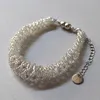 “繭” 活動が停止または鈍い活動状態にある動物を包んで 保護する覆い また蚕(カイコ)の覆いは絹糸となる 自身を覆うものは自身によって産み出される 外界を遮断し 内側を静かに育てるかたちは 変わろうとする気配に寄り添うものです 美しい覆いを装いながら --- 光をふくんだ 金属のような 小さなガラスの粒 透明感と 静かなきらめきが 装いにそっと寄り添います シンプルなコーディネートにも自然に馴染む 空気を含んだ やわらかなかたち --- material ガラスビーズ、真鍮、マグネット、テグス *留め金具はマグネットタイプを使用しております size 約180㎜+アジャスター50㎜ weight 約8.6g *CACICOの商品は全て1点1点制作しているため、個体差があり、商品写真と差がある場合がございます。ご了承の上、ご購入ください。 *金属アレルギーの方はご使用をお控えください
