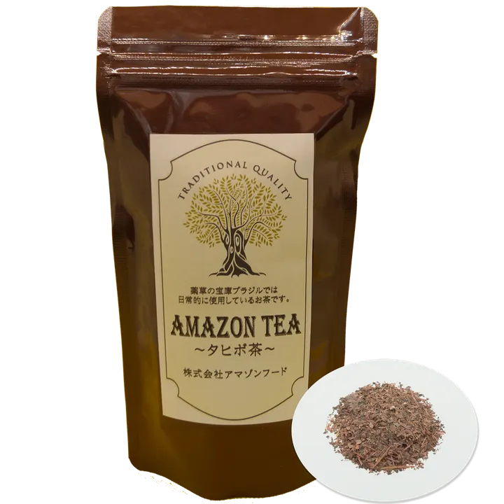 アマゾンの奥深くで採れる希少なタヒボの樹皮を使用した「AMAZON TEA」です。無添加・無着色・ノンカフェインで、小さなお子様からご年配の方まで幅広くお楽しみいただけます。 深い味わいと香りが特徴で、自然の風味をお楽しみいただけます。ビタミンやミネラルなどが含まれていますが、食品として日常の飲用に適しています。 【商品名】アマゾン茶 【原材料】タヒボ樹皮 【内容量】150g 【保存方法】直射日光・湿気を避け、涼しい場所で保存してください。 【お召し上がり方】 ポットに小さじ1杯のお茶を入れ、約500mlの熱湯を注ぎ、そのままお飲みください。 やかんに1リットルの水を入れて沸騰させた後、弱火で小さじ2杯を約10分間煮出してお飲みいただく方法もおすすめです。 クセがなく苦みも少ないため、子どもにも飲みやすいお茶です。
