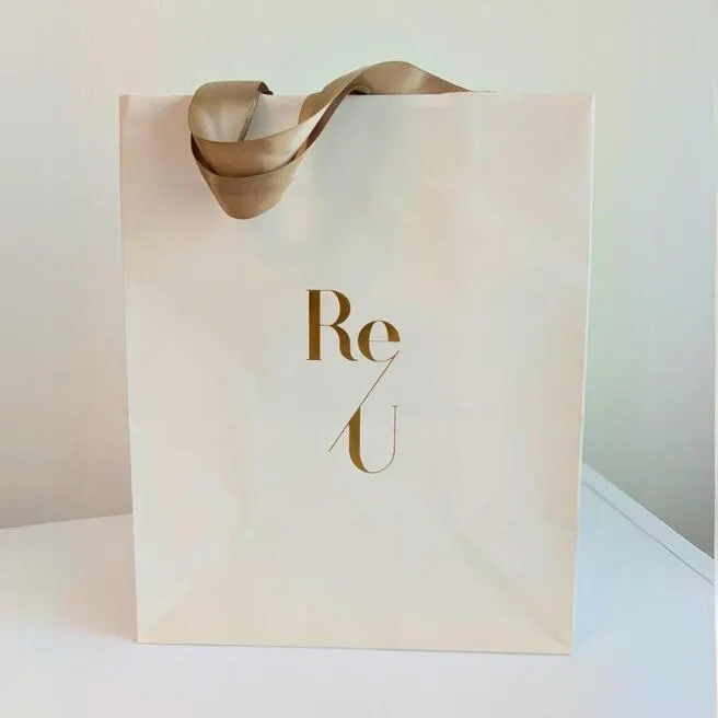 お客様に商品をお渡しする際にお使いいただける、Re/Uオリジナル紙ショッパーです。