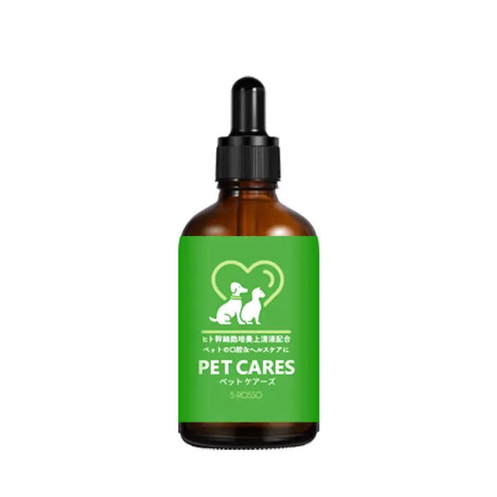 【10本セット】 獣医療でも注目されている「幹細胞培養上清液」を配合したペット用の『ヘルスケア&口腔ケア』エッセンスです。 毎日のエサに数滴ほど混ぜるだけですので簡単にご使用いただけます。 小型犬~大型犬、小型猫~大型猫 など、あらゆる大きさのペットにご使用いただけます。 ワンちゃんネコちゃん以外の動物にもご使用可能です。
