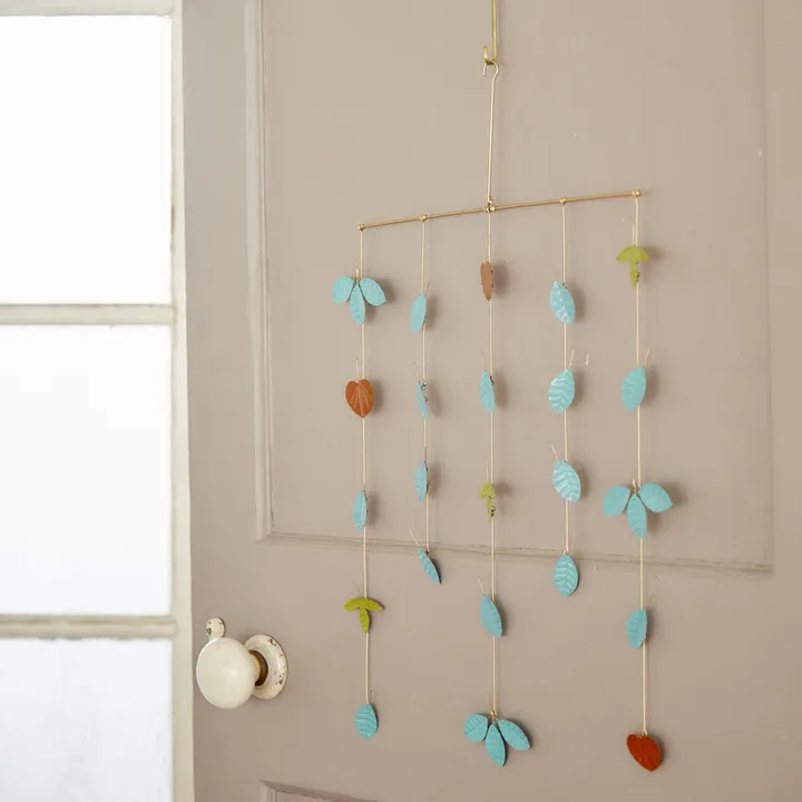ブリキ素材でできた リーフモチーフのモビール GN(グリーン)