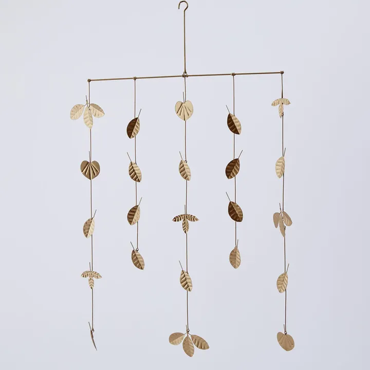 ブリキ素材でできた リーフモチーフのモビール GL(ゴールド)