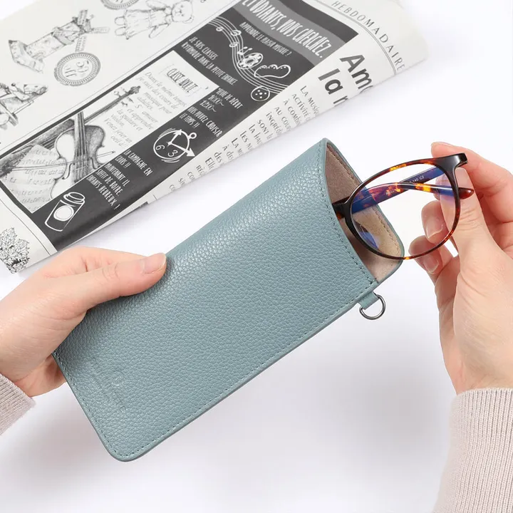 【革で優しくメガネを包む】レザーメガネケース 薄型軽量ソフト眼鏡ケース / GC1 スカイブルー