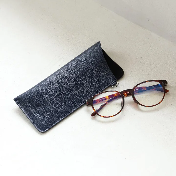 【革で優しくメガネを包む】レザーメガネケース 薄型軽量ソフト眼鏡ケース / GC1 ダークネイビー