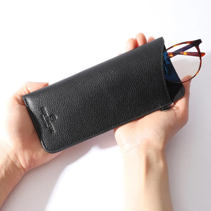【革で優しくメガネを包む】レザーメガネケース 薄型軽量ソフト眼鏡ケース / GC1 ロイヤルブラック