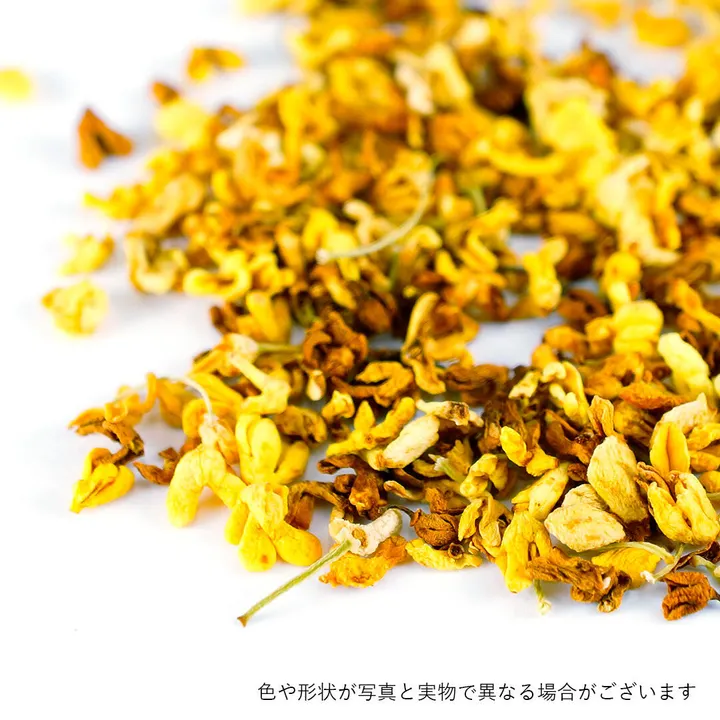 ドライハーブの特徴 華やかな花の香りを楽しめます。 おいしい飲み方 ティースプーン1?2杯(約2グラム)のドライハーブをポットに入れ、 150cc?200cc程度の熱湯を注ぎ、フタをして3?5分間蒸らします。 ※実や根などかたいものは、軽くつぶすとより香りが立ちます。 保存方法 直射日光・高温多湿を避け、冷暗所にて密閉保存下さい。 開封後はどうぞお早めにご使用下さい。 英名 Fragrant orange-colored olive 学名 Osmanthus fragrans 科名 モクセイ科 部位 花 別名 桂花 原産国 中国 ※原産国は 気候やその他の要因になり、予告なしに変更する場合があります。 ※ドライハーブは天然物です。栽培地の環境によって色や形状が写真と違う場合がございます。予めご理解賜りますようお願い申し上げます。