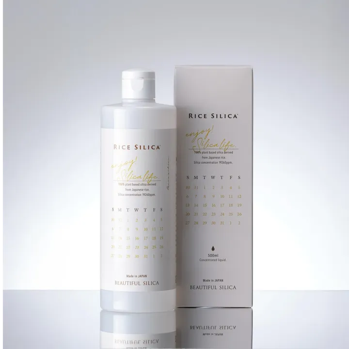 40年の研究を経て、国産無農薬米由来の植物性シリカを独自の超微粒子技術で配合。角質層への浸透力と安定性を両立