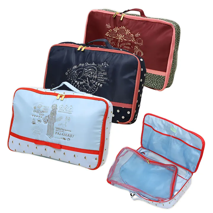 日常のワンシーンを繊細なデザインで刺繍に落とし込んだシリーズ。カラーごとに刺繍のデザインや生地の柄が異なりますので、いっしょに旅行を楽しまれるご友人や家族と色違いで持っていただきたいアイテムです! 通常の下着ケースより大きなBig下着ケースは長旅に重宝しそう! メッシュポーチ付きで大きいだけじゃなくて整理整頓だっておまかせ♪ 子供連れの旅にはおむつケースとしても◎