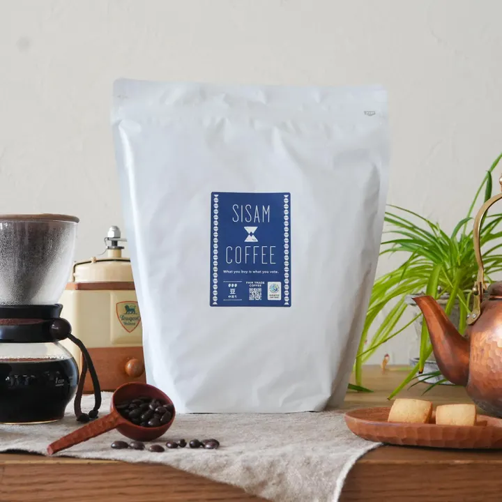 ========================================= ■年末年始の業務用コーヒーの発注について  焙煎所の年末年始休業に伴い、焙煎・出荷のスケジュールが一時的に変わります。  年内最終発注:12月17日(水)午前中までのご注文 → 12月25日(木)以降出荷  年始発注再開:1月7日(水)午前中までのご注文 → 1月15日(木)以降出荷  ※12/17発注後〜年始発注再開までのご注文分は、まとめて1/7に発注させていただきます。 ========================================= カフェやイベント出店などの際に使いやすい業務用サイズとなりますので、価格はオープンプライスとしております。 ※原則毎週水曜日の午前中までにいただいたご注文分を焙煎し、翌週水曜日以降に発送させていただきます。 SISAM COFFEEは、シサム工房のオリジナルのフェアトレードコーヒーです。 目指したのは、シンプルにおいしいこと。「みんなが幸せになるコーヒー」であること。 SISAM COFFEEのコンセプトである「シンプルにおいしいこと、「みんなが幸せになるコーヒー」であること」はそのままに、「朝に飲みたいコーヒー」をテーマに焙煎されました。 柑橘系のような爽やかな酸味と、ナッツのような香ばしさが特徴です。 深煎りに比べ、より軽い飲み口で後味もすっきり。心地よく体を目覚めさせてくれる朝の1杯になること間違いなしです! *焙煎は京都で行われています ■ CGN(コーディリエラ・グリーン・ネットワーク) フィリピンのルソン島で活動する環境NGO「コーディリエラ・グリーン・ネットワーク(以下CGN)」は、山で自然と共に生きる人々の暮らしを支えるため、CGNからは生産者グループに、コーヒー豆の仕入れ額とは別に18%のプレミアムが支払われています。 各世帯の人々がそれぞれCGNとともに、自分たちの生産活動と地球環境、健康との結びつきなどへの意識を高めながら、コーヒー栽培に取り組んでいます。 シサムコーヒーはフィリピン北部コーディリエラ地方で環境や伝統を守りながら暮らす小規模農家の人たちを支援するコーヒー。 【オーガニック】 認証は未取得ですが、化学肥料や農薬を用いず、多様な野菜や樹木と一緒に栽培するアグロフォレストリー(森林農法)で育てられています。