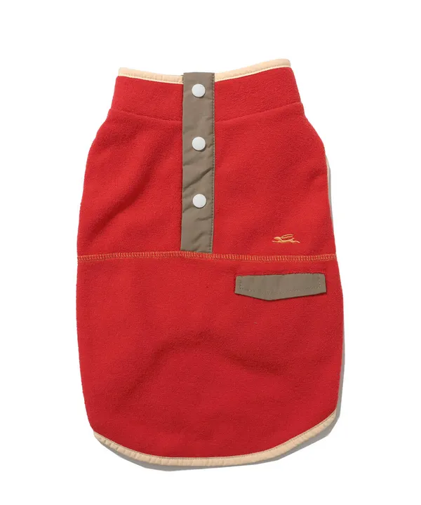 軽くて暖かいのが大好評! 肌触りも柔らかく、ふんわりした風合いが特徴のオリジナルブークレシリーズ! 今年は犬服も登場です! 背中部分と胸ポケットの別生地使いが特徴的で、ポップな配色のスナップT。 スナップボタンはフェイクになっており、面ファスナーで開閉できるのでワンちゃんに負担をかけず、楽に着脱が可能です。 首周りが大きいワンちゃんには、あえて開けて襟を折り返して着せてあげても可愛い一枚です。 S・Mは面ファスナー2つ、L・XL・XXLは3つで調節できます。