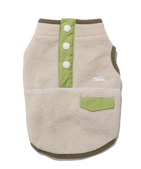 軽くて暖かいのが大好評! 肌触りも柔らかく、ふんわりした風合いが特徴のオリジナルブークレシリーズ! 今年は犬服も登場です! 背中部分と胸ポケットの別生地使いが特徴的で、ポップな配色のスナップT。 スナップボタンはフェイクになっており、面ファスナーで開閉できるのでワンちゃんに負担をかけず、楽に着脱が可能です。 首周りが大きいワンちゃんには、あえて開けて襟を折り返して着せてあげても可愛い一枚です。 S・Mは面ファスナー2つ、L・XL・XXLは3つで調節できます。