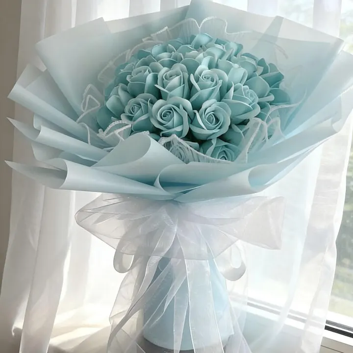 33本水色バラ大人気 4色選べる枯れないお花 花束 大人気ソープフラワー 花束 母の日造花 花 敬老の日フラワーギフト バラ 結婚式誕生日卒業式成人式プレゼント 水色