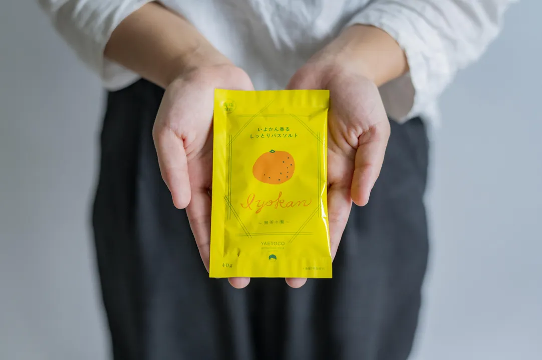 【伊予柑のやさしい香りで、ほっとするバスタイムを】 無茶々園の生産者が育てた伊予柑の果皮から抽出した精油(※1)を使用した、天然由来のバスソルト。果汁を搾った後の果皮を蒸留して抽出した精油を香りづけに使い、「畑でできたものを余すことなく」をコンセプトのもとに生まれました。 さらさらの粉末はお湯にさっと溶け、やさしい伊予柑の香りが湯気とともにふんわり広がります。 天然由来の保湿成分(※2)も配合しており、入浴後のお肌も心地よく。使い切りの個包装タイプで、日々のご褒美やギフトにもぴったりの一品です。 ※1 イヨカン果皮油(香料) ※2 スクワラン、褐藻エキス(保湿成分) 【香りと原料へのこだわり】 柑橘の香りを生かすこと。それは柑橘の産地である無茶々園が、長年大切にしてきた想いです。 「いよかん香るしっとりバスソルト」には、伊予柑の果皮から抽出した精油を使用。合成香料や合成着色料、石油由来成分は使わず、自然の恵みで仕上げました。 【こんな方におすすめ】 ・ほっと落ち着く香りのバスタイムを楽しみたい方 ・合成香料・合成着色料を避けたいナチュラル志向の方 ・乾燥が気になる季節に、保湿成分入りの入浴料を使いたい方 ・使い切りタイプで気軽に試せるものをお探しの方 ・想いの込もった贈りものを選びたい方 【使用方法】 粉末が細かく舞いやすいので、本品を浴槽のお湯(約200L)の湯面に近いところから全量を静かに入れ、よく溶かしてからお入りください。