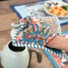 鍋敷きミトン カリーノブロックプリント ターコイズ