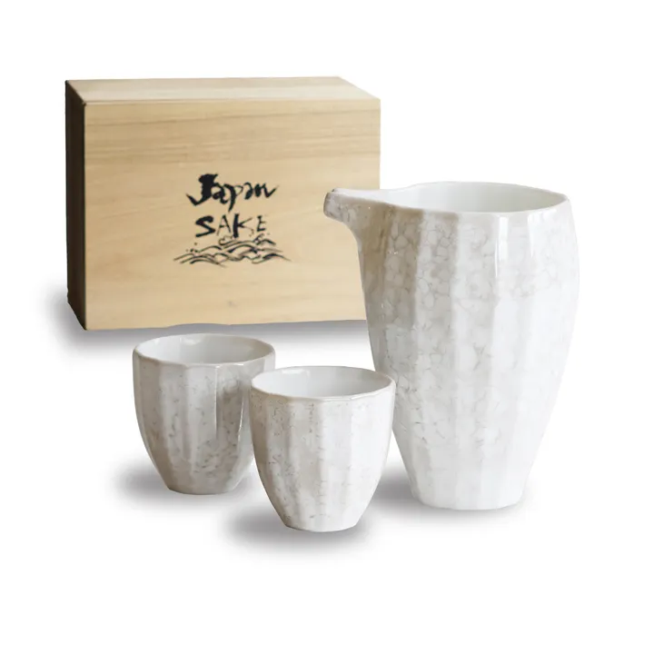 特殊な技法でキラッと煌めく光沢の高級感 シャンパンをグラスに注いだときの泡の表情をラスター加工で表現しました 焼き上げた磁器に、特殊な顔料を全面に塗り、その上から弾く液体を掛ける幾度たる手間と技で仕上がったうつわです お祝いやめでたい席、大切な人と囲む宴の席でひと際輝くシャンパーニュの酒器で、お酒の席もより盛り上がりそうです 口径が大きく、日本酒の香りをダイレクトに楽しめるのが片口の魅力 徳利よりも容量が大きく、お酒をたっぷりとカジュアルに楽しむことができます 冷酒用という印象を持つ方も多いかもしれませんが、磁器製で電子レンジ対応です 簡単に燗をつけることもできます 徳利と違い開口部が広いため、洗いやすいのもうれしいポイントです