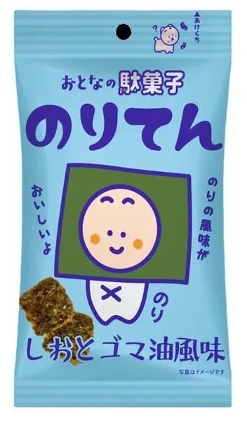 駄菓子のようかお手軽感と遊び心を、大人向けにアレンジしたおつまみスナック。 一口サイズののり天に、香り立つごま油とピリッと効いた塩味を合わせ、あとを引くおいしさに仕上げました。