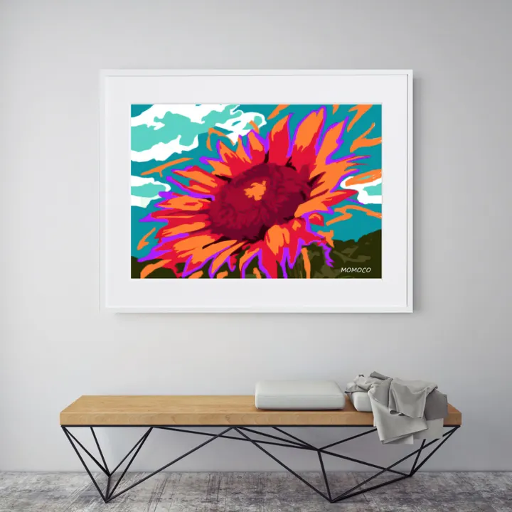 アーティスト -PROFILE- MOMOCO(モモコ) 「色」をこよなく愛する画家、ライブペインター。 躍動感あるアートにも関わらず、服を一切汚さず短時間で音楽と同時に描き上げる。そのパフォーマンスと巨大アートは観る人を魅了する。 前職は某有名ファッションブランドにてデザイナーとして活躍。その経験の中で養われた「色とデザイン」の絶妙なバランスを活かしつつ、トレンドを取り入れ進化し続けるアートを目指す!国内外問わず、精力的にアートと向き合い発信を続けている。 【作品について】 ビタミンカラーが目を引く!ポップなデザイン 眺めるだけで日々の活力になるような、そんな元気をもらえる素敵な作品 子供部屋や、キッズルームにもおすすめです 作品名:himawari Ⅲ 手法:デジタル、イラスト ペーパー:高品質半光沢紙 マットカラー:白 マット*:DXホワイト芯 100%バージンパルプ/PH7・中性紙(2mm厚) ※全てのアートにマットがつきます フレームカラー:黒、白、無垢(3種類から選択) ※マット付のため通常とはフレームサイズが異なる規格となります。 【マット*とは?】 アートポスターの周りに挟んだ厚紙の事。 マットを使わない時に比べ余白により広がりが生まれ、作品の新たな一面を引き出せ作品の見栄えがグッと良くなります。また、額縁のガラス面と作品が直接触れたままにしておくと、くっついて作品を傷つけることがあります。マットを使用することでガラスと作品の間に空間ができ、作品を保護することができます。ブランドコンセプトにより全てのアートにマットがつきます。 ー ファッションのようにアートを ー 私達が掲げるコンセプトです! 毎日着替えるファッションの様に、アートも気軽に飾り変えて欲しい... 一旦飾り終えたアートにも光を当ててほしい... ポスター単体、またはリピートで中身だけのポスターを購入された方に"専用のハンガー"をセットでお届け。 「今までに無い!新しいアートの飾り方を提案」 飾る事がなくなった前のアートをハンガーにかけて洋服と一緒にかけてもらう。 その日の気分や、モチベーションですぐに取り換えられる様に。 もちろん、魅せる収納としても今までにないおすすめの飾り方です。