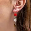 Aretes Corazón con Encaje y Flor|ハートのピアス(シルバー・アンバー・天然石)