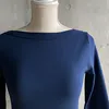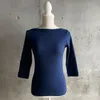 【日本製】丸胴コットンフライス_ボートネック7分袖 ネイビー 1-2サイズ