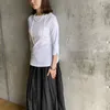 【日本製】丸胴コットンフライス_ボートネック7分袖 ホワイト 1-2サイズ