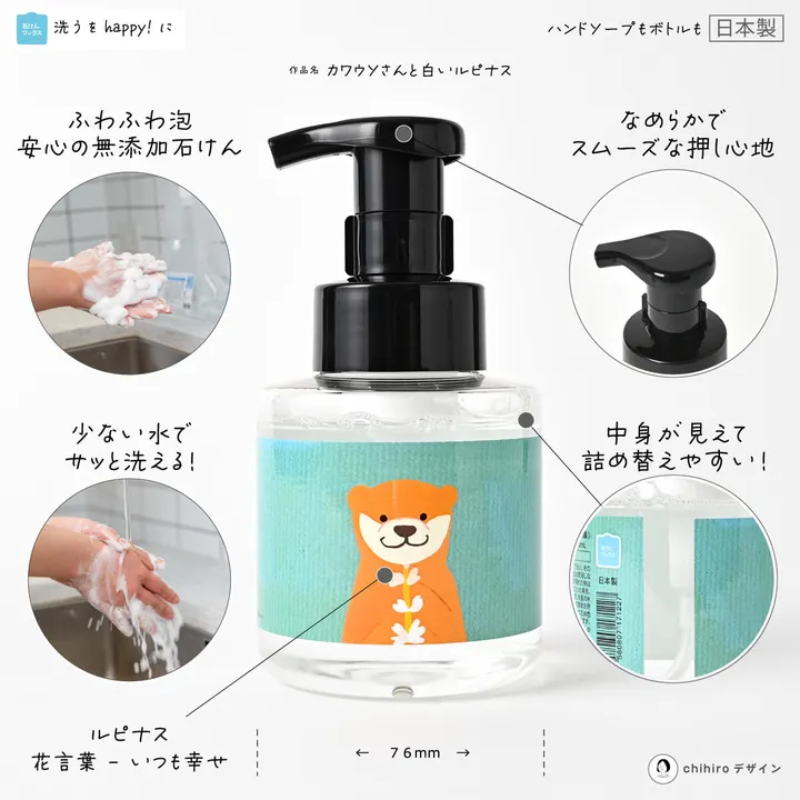 石けんワークス 無添加泡のハンドソープ 280mL (ボトルデザイン - ハナコトバ) カワウソさんと白いルピナス