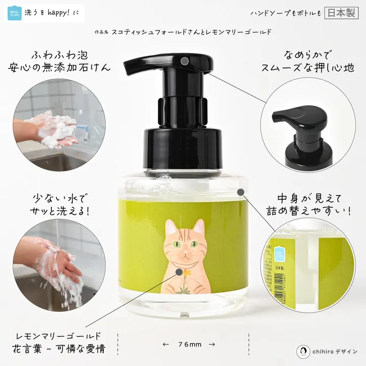 石けんワークス 無添加泡のハンドソープ 280mL (ボトルデザイン - ハナコトバ) スコティッシュフォールドさんとレモンマリーゴールド